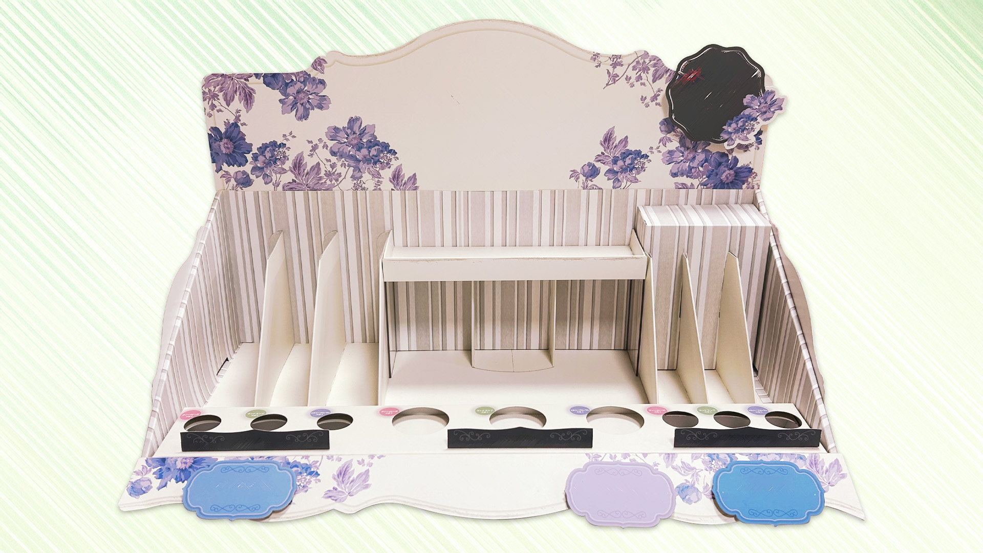 シリーズ商品をひとつに陳列でき、それぞれテスターも組み込まれているため、